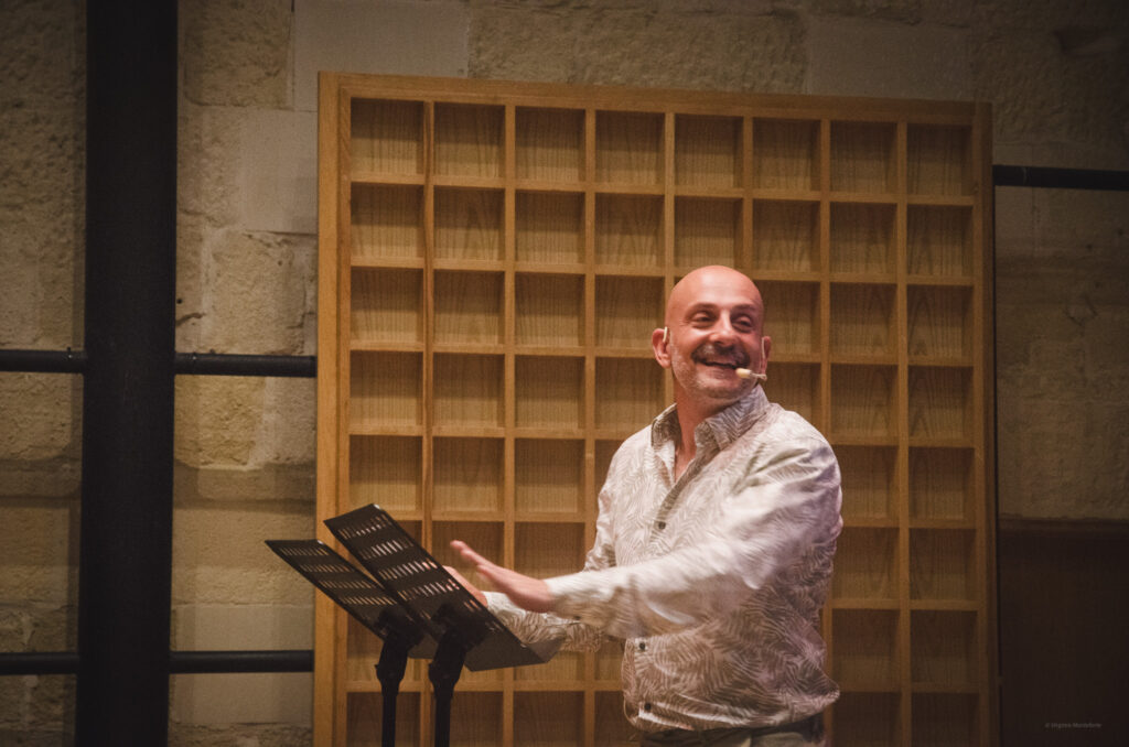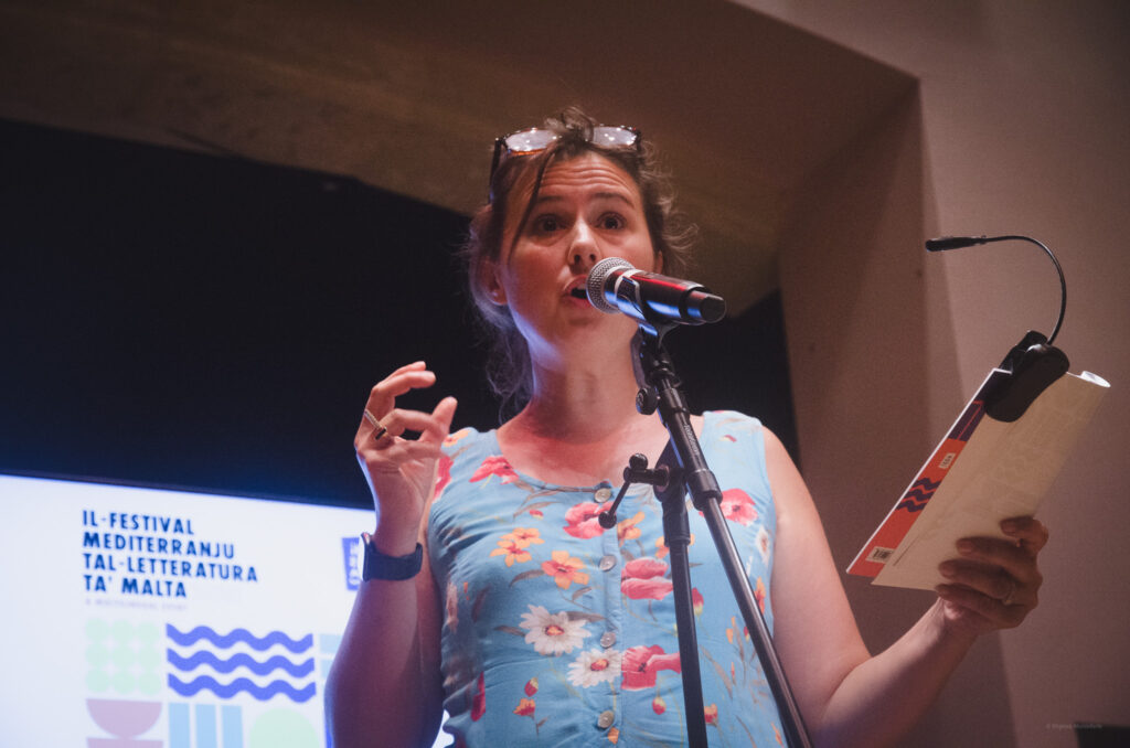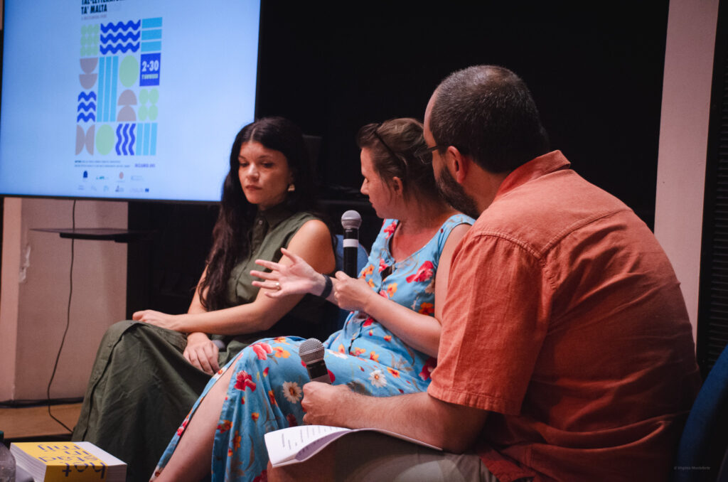 As part of the Malta Mediterranean Literature Festival 2025, All the Wor(l)d’s a Stage took place on 26 August. This event brought together performance, poetry, and playwriting to explore the power of the spoken and written word on stage. The featured guests of the event included Maltese playwright and actress Simone Spiteri, and Belgian poet and performer Maud Vanhauwaert, who appeared as part of the Versopolis platform which supports emerging European poetic voices. Author and performer Keith Borg lead the session, guiding the conversation on the convergences between literature, theatre, and live performance. The evening featured readings and performances by Vanhauwaert and actors Kristjana Casha and Toni Attard.