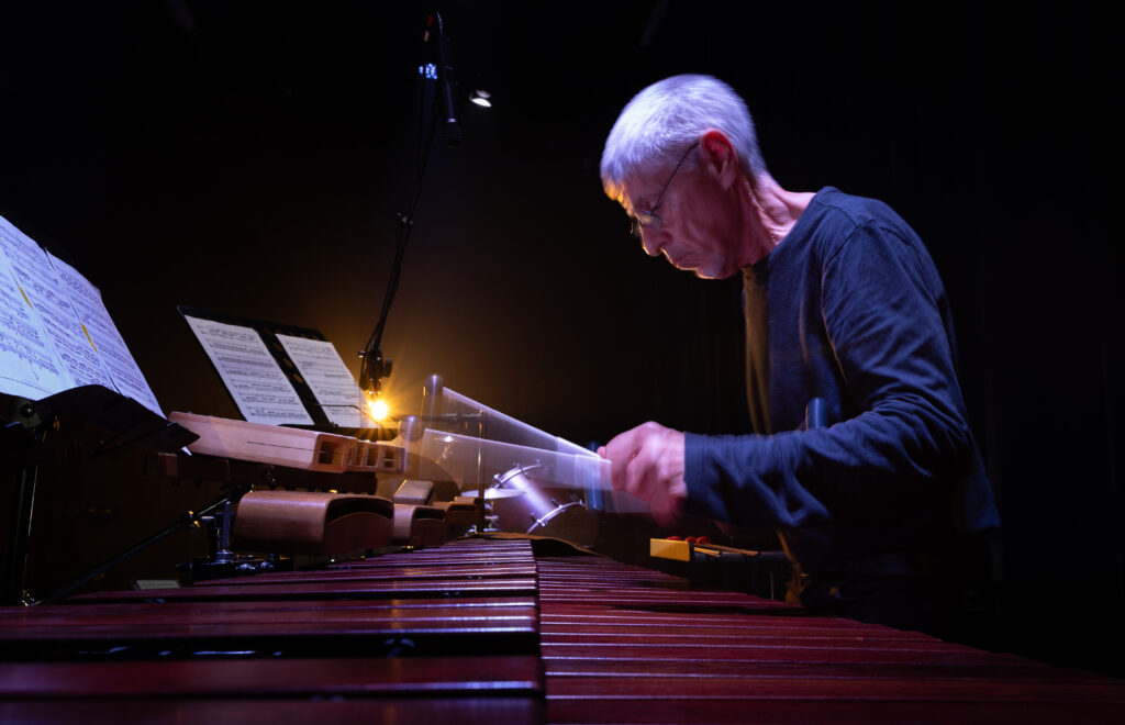 The programme’s dramaturgy became particularly apparent with the penultimate musical interlude, Louis Andriessen’s Woodpecker (1999). This clever piece for marimba and woodblocks functions as a witty dialogue between pitched and unpitched percussion, with the composer playfully exploring the interactions between these distinct wooden timbres. From a structural perspective, it served as an effective dramaturgical bridge to the finale. The introduction of the marimba, a new instrumental colour, signalled a transition and anticipated its central role in the final work of the evening.