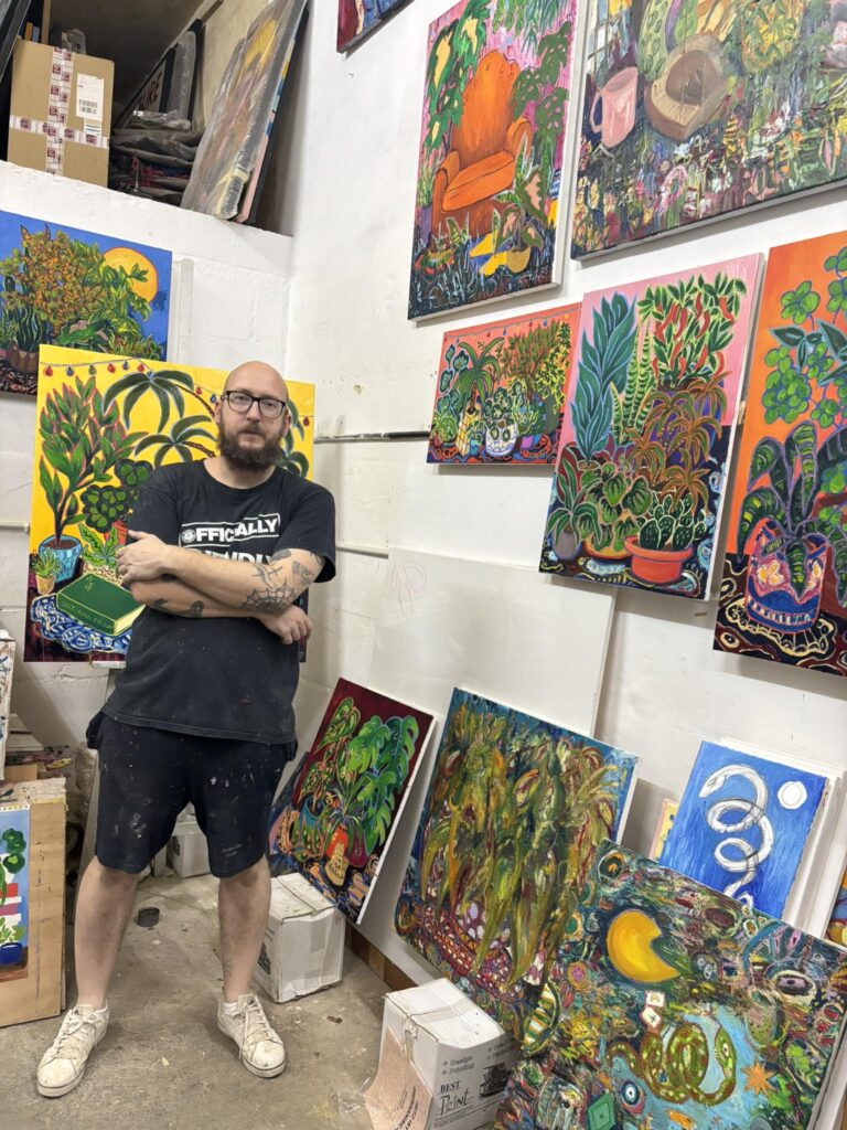 Sitting still does not necessarily mean sitting quietly. There is plenty that can be said not only of the technical ability of both painters and the mastery of their own crafts, respectively, but also of the ability to emote feelings and discourse through a labyrinth of objects that, when grouped, tell a story that is all their own. Walking through the space, one creaky floorboard at a time, past the aptly placed plants, presumably Falzon’s subjects, and a carefully curated selection of books, the viewer is invited to not only observe, but to sit, read and learn about the breakdown of space, life and stillness.