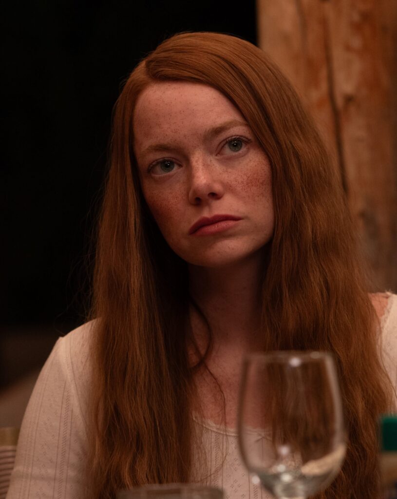 The supporting cast is equally impressive. Emma Stone brings a raw vulnerability to her role, while Austin Butler delivers a performance of simmering menace: his character is charismatic and dangerous, feeding off the town’s unrest and conspiratorial leanings.