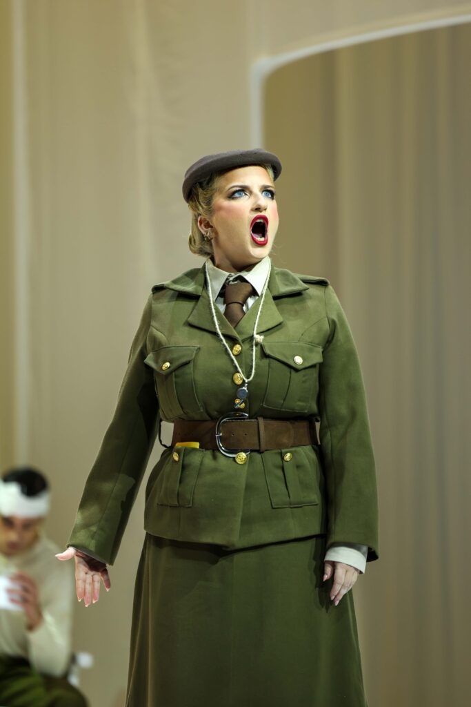 This opera was set in the world of the ‘Roaring Twenties’, and the costumes, designed by Luke Azzopardi, did a lot of the work in terms of establishing historical time and place, compared with the somewhat abstract, unobtrusive set by Anthony Bonnici, but there were some nice touches in the choreography by Simon Riccardi-Zani (such as the slow-mo Charleston). Warmly subtle lighting by Moritz Zavan Stoeckle set the emotional temperature of certain scenes, and the sudden changes of lighting at the start of the B section in a few of the da capo arias added scenographic interest.